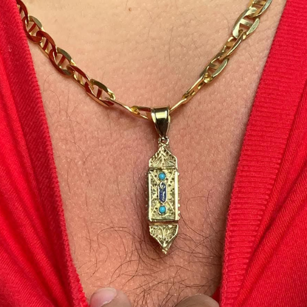 Two-tone "Shin" Inscribed Sefer Torah Pendant in 14k Gold