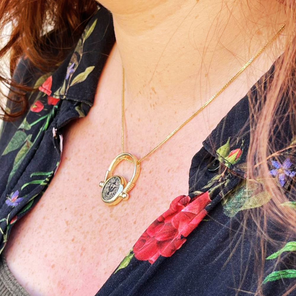 Discover a truly unique treasure with our exquisite 14K Solid Gold Ancient Maccabean Coin Ring-cum-Pendant, featuring an authentic "Widow's Mite" coin. This creative piece offers unparalleled versatility, allowing you to honor a profound historical and biblical narrative in two distinct ways. Each ring is meticulously crafted around a genuine ancient Maccabean coin, believed to be the humble "Widow's Mite" spoken of in the New Testament, representing faith and sacrifice. This direct connection to antiquity makes the piece not just jewelry, but a tangible link to millennia of human history and spiritual devotion.