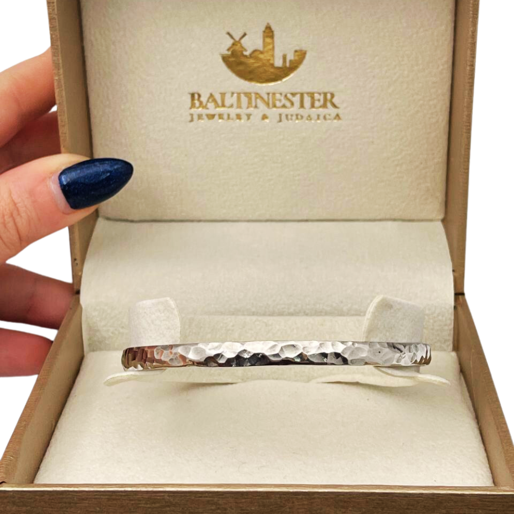Crafted by skilled artisans in Israel, this bangle is more than just an accessory; it's a piece of wearable art that reflects the rich cultural heritage of the region. Whether you're layering it with other bangles or wearing it solo, this silver Moroccan stacking bangle will add a touch of bohemian elegance to your look. Available in three sizes for the perfect fit.