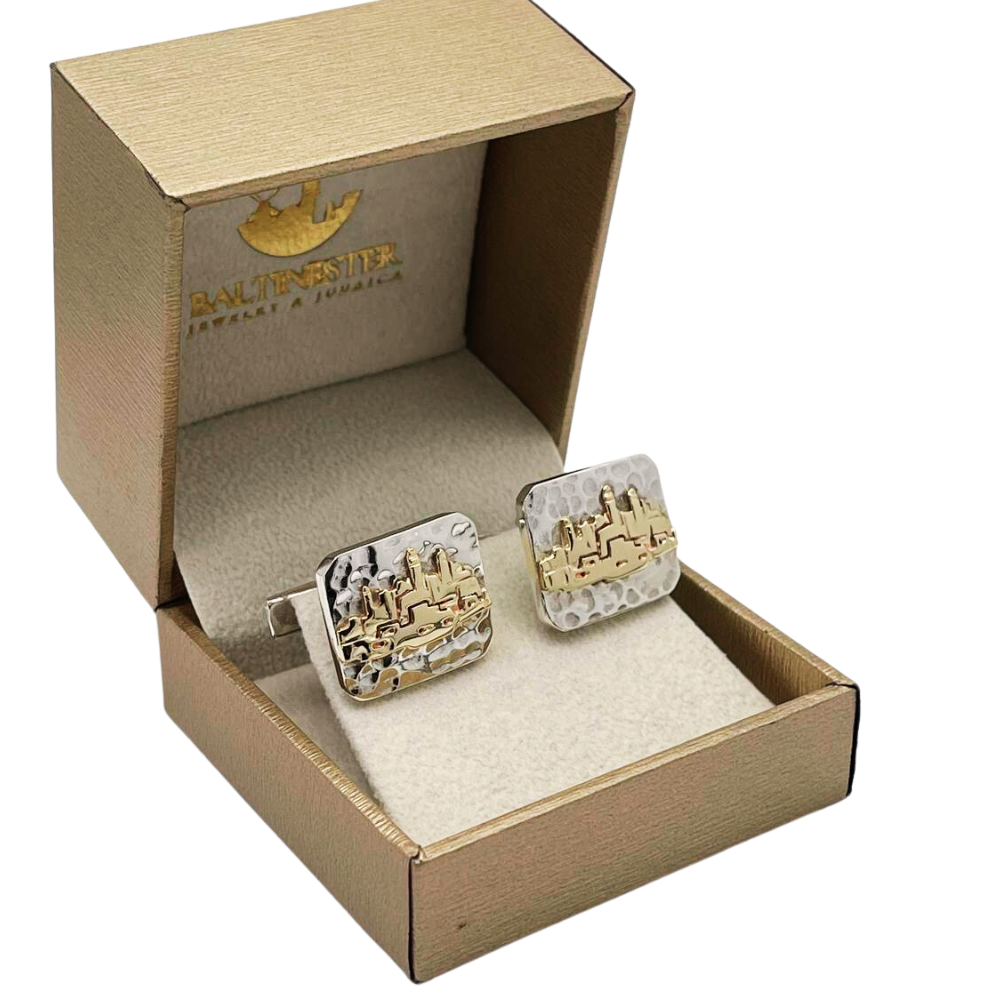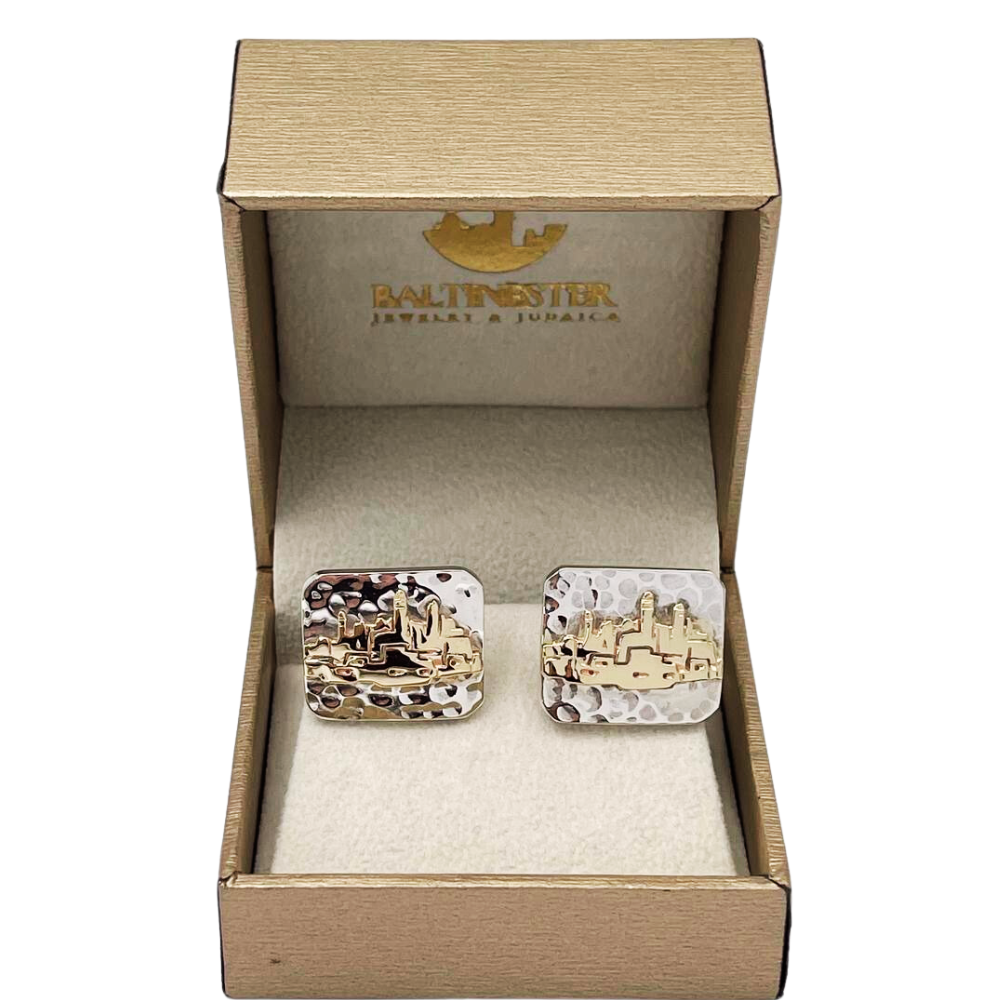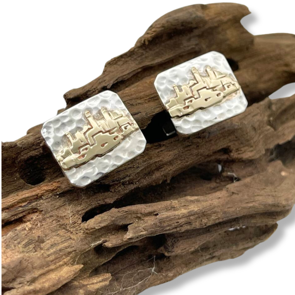 Jerusalem Cufflinks in Hammered Silver and Gold