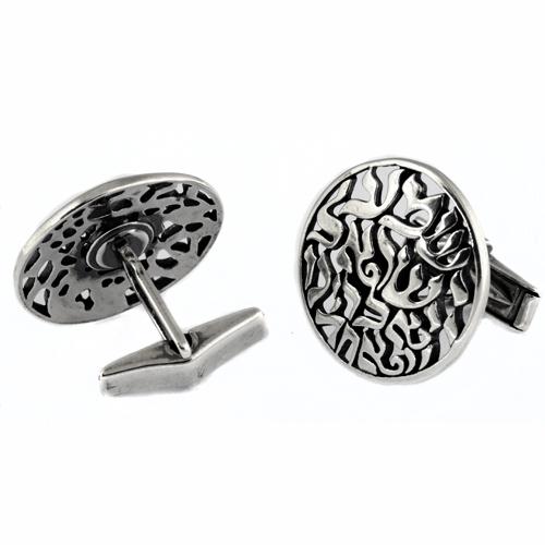 Hebrew Cufflinks - Large Silver Hebrew Shema Cufflinks