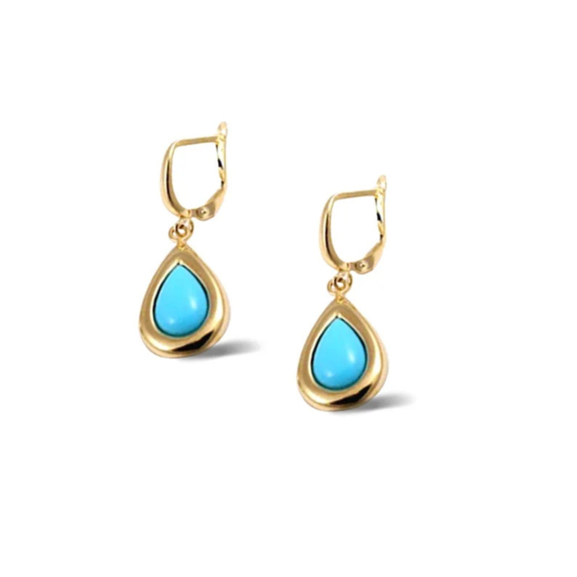 14k Gold Teardrop Turquoise Earrings