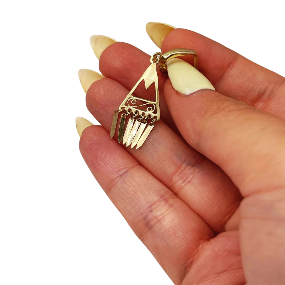 Elevate your jewelry collection with these stunning 14K gold filigree fringe earrings, masterfully handcrafted in Israel by skilled artisans. Featuring intricate minimalist filigree work, each earring captures the perfect balance between delicate detail and bold boho chic sophistication.