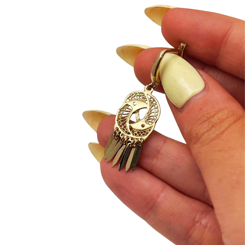 14K Gold Filigree Yin Yang Fringe Earrings