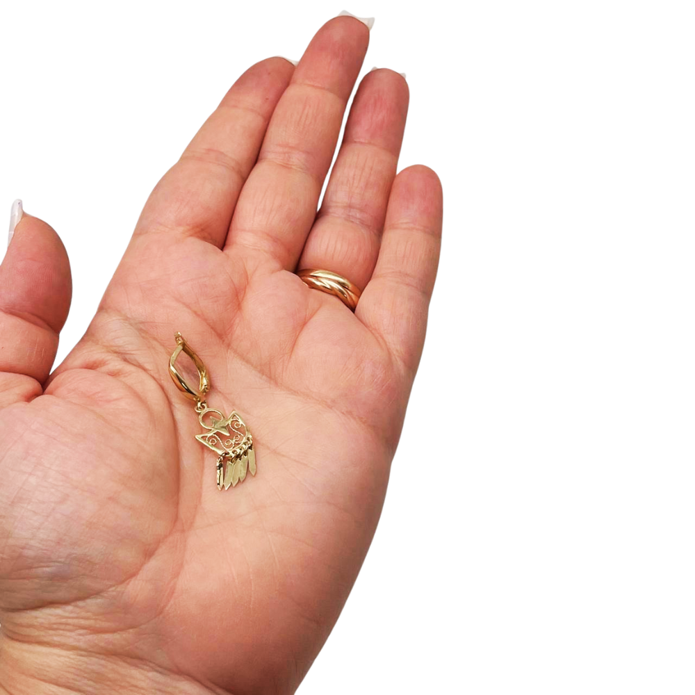 14K Gold Filigree Crescent Fringe Earrings