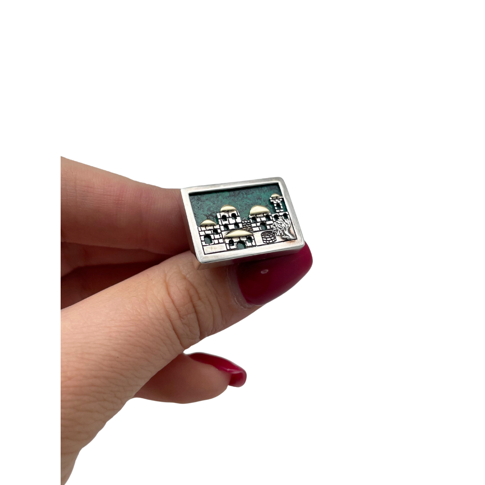 Jerusalem Skyline Cufflinks in Sterling Silver & Gold with Eilat Stone