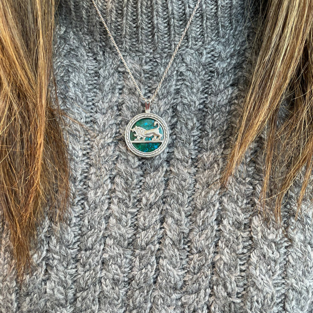 Lion of Judah Pendant and Chain - Jerusalem Eilat Stone Round Silver