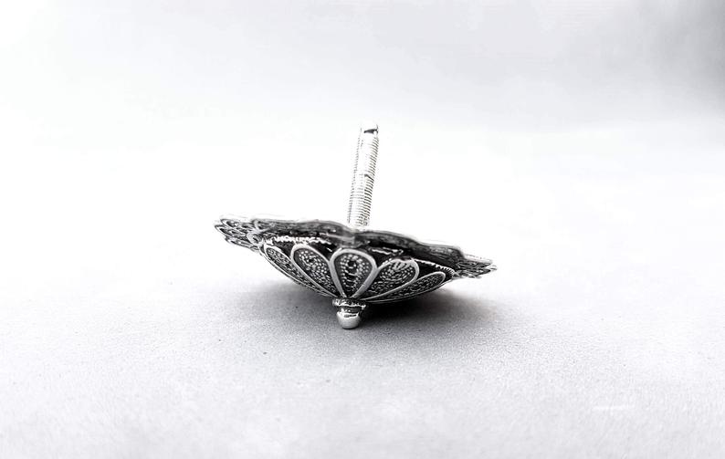 Jewish Hanukkah celebrations are incomplete without the customary play with dreidels. Filigree art is traditionally handed down Yemenite silversmith families, reminiscent of a Jewish legacy.