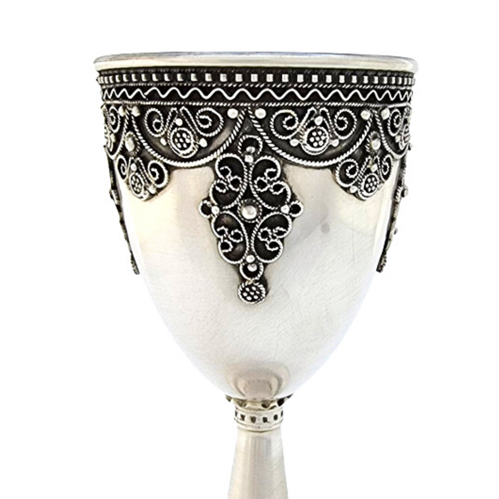 Goblet Style Sterling Silver Kiddush Cup in Medium Filigree