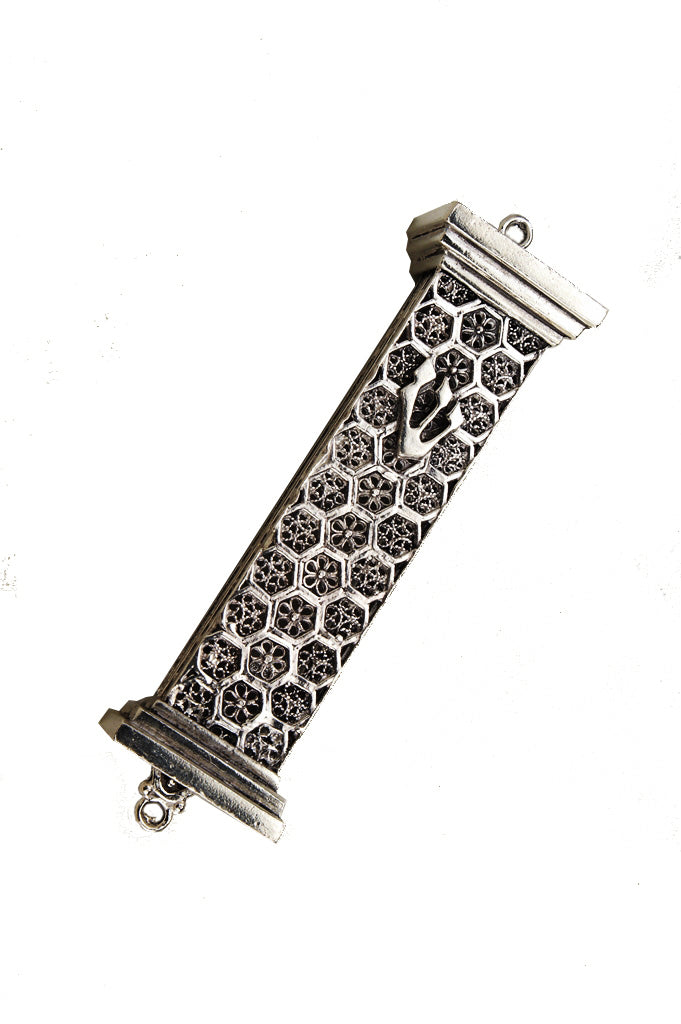 Sterling Silver Honeycomb Filigree Mezuzah Case