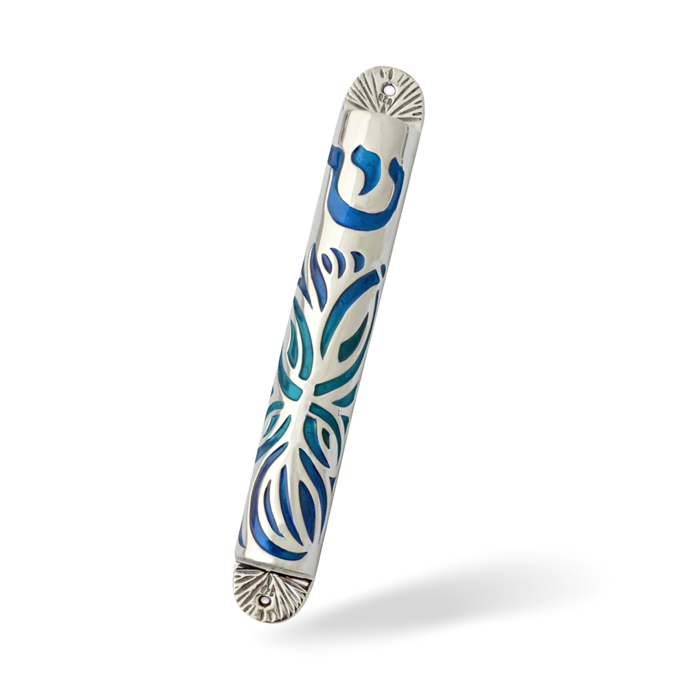 Mezuzah Case in Sterling Silver with Enamel Detailing