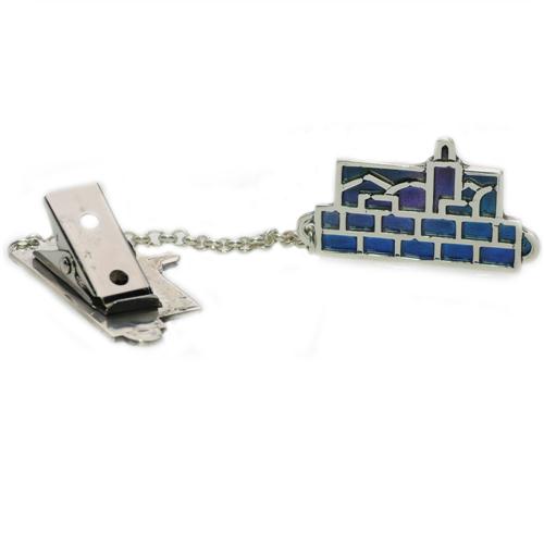 Whether at home or in the synagogue, these striking Dark Colored Enamel Jerusalem Skyline Silver Tallit Clips are an attractive addition to prayer time. The deep, bold colors contrast the silver clip well to create a special piece of jewelry.