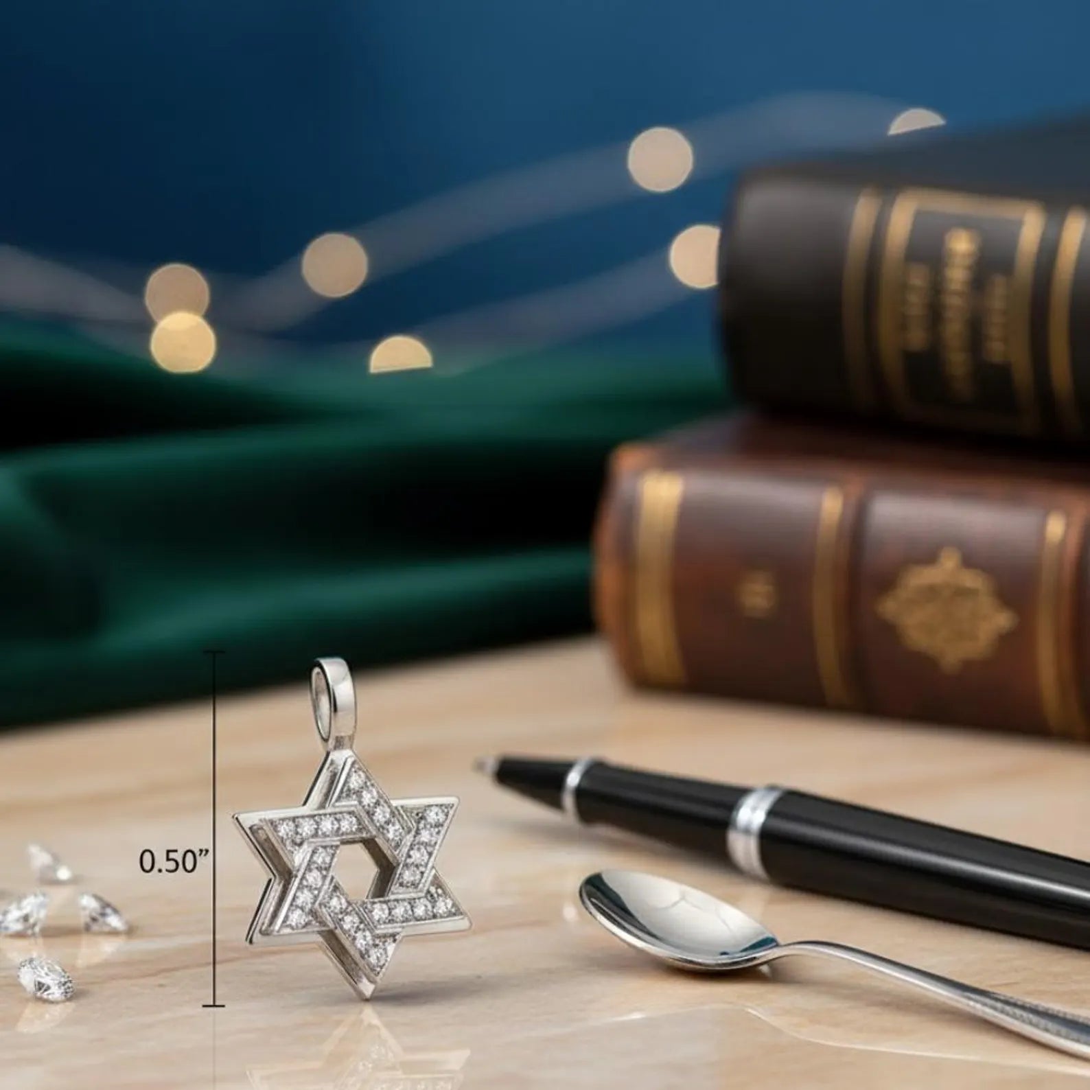 Small 18k White Gold Dual Layer Diamond Star of David Pendant
