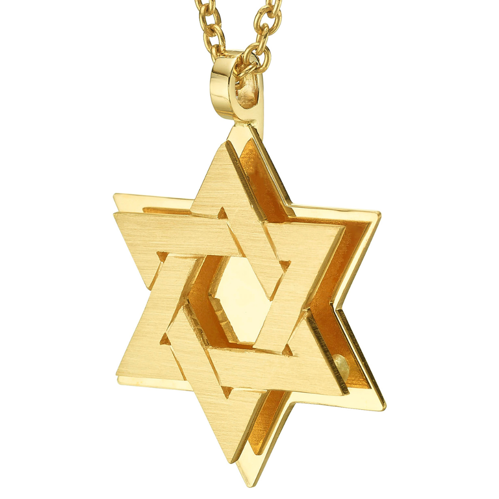 18K Gold Dual Layered Brushed Star of David Pendant