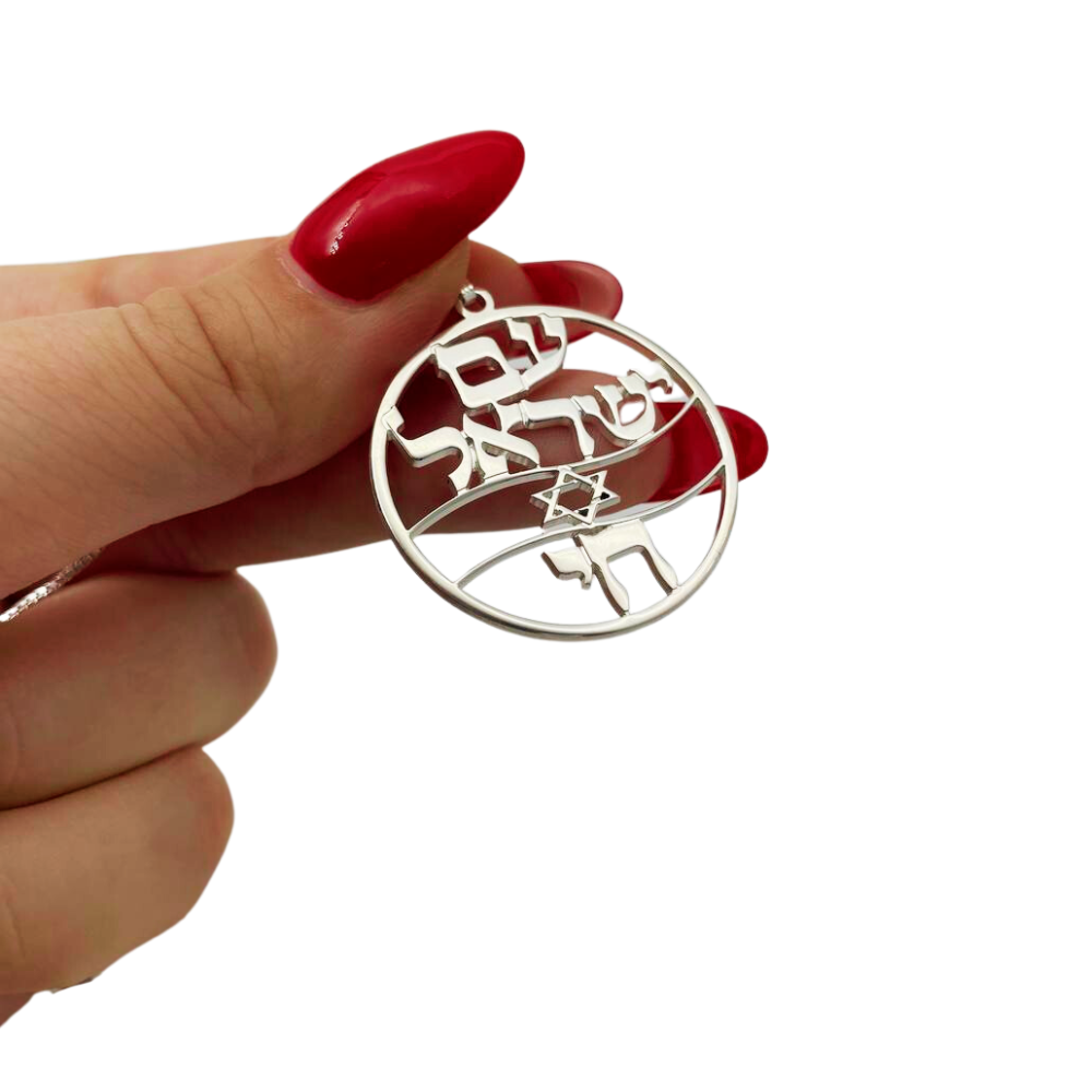 Am Israel Chai and Israel Flag Round Pendant and Chain in Sterling Silver