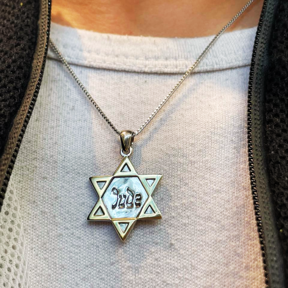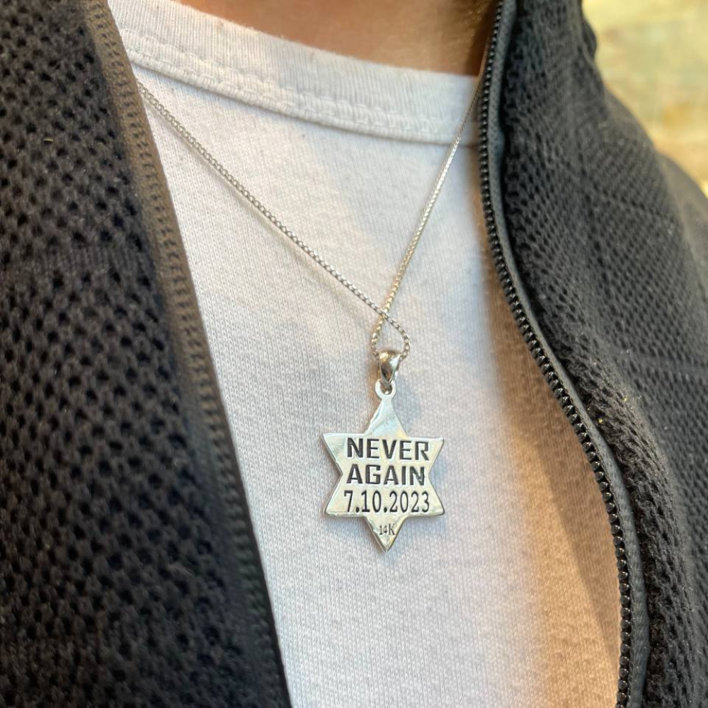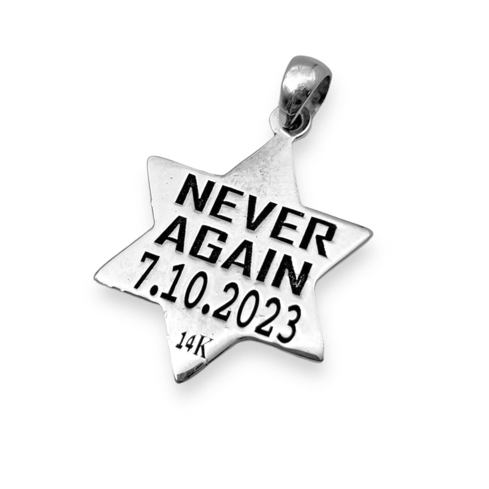 Star of David Jude Never Again October 7 Pendant in 14K Gold