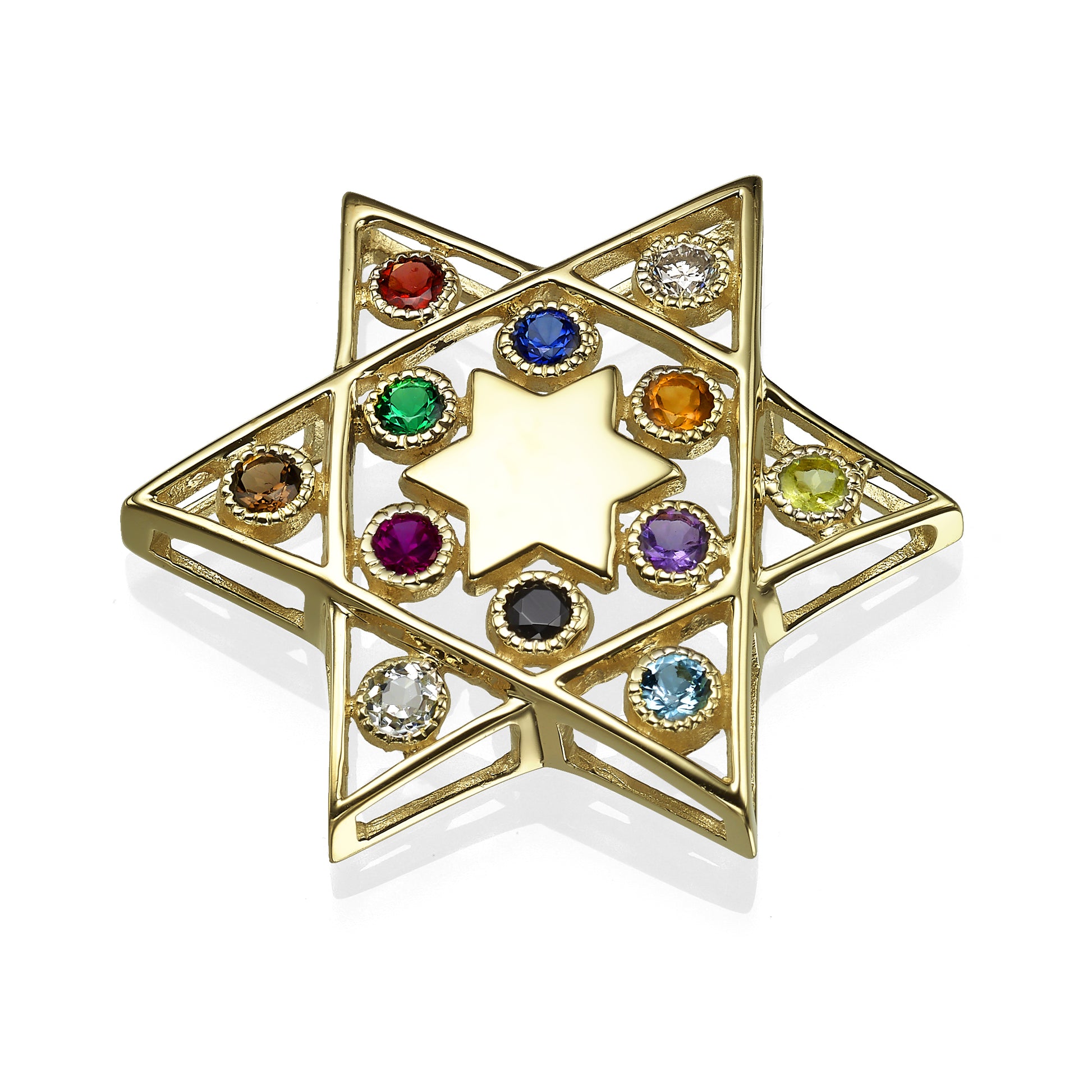 Star of David Pendant - 14K Yellow Gold Cut-out - with Hoshen Gemstones