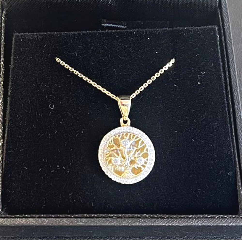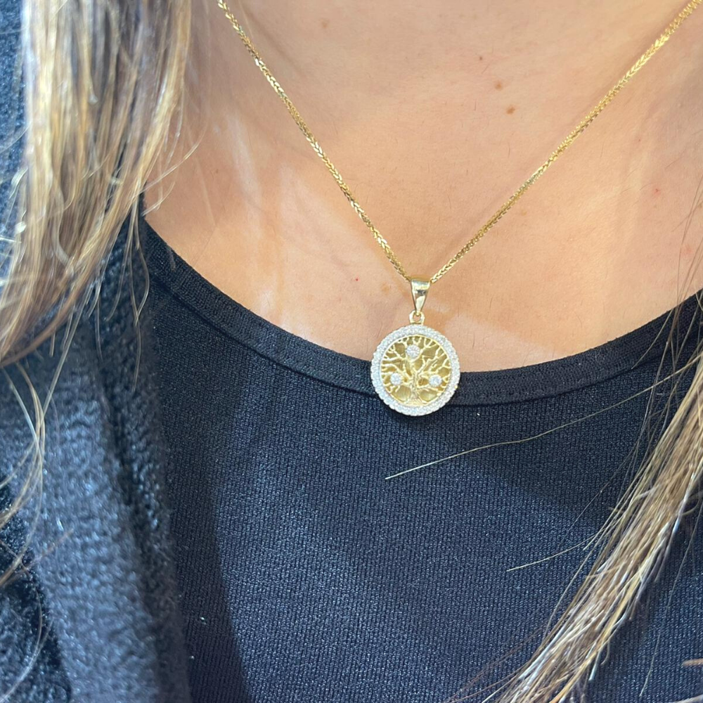 14K Yellow Gold Round Tree of Life Pendant With Diamonds (Small)