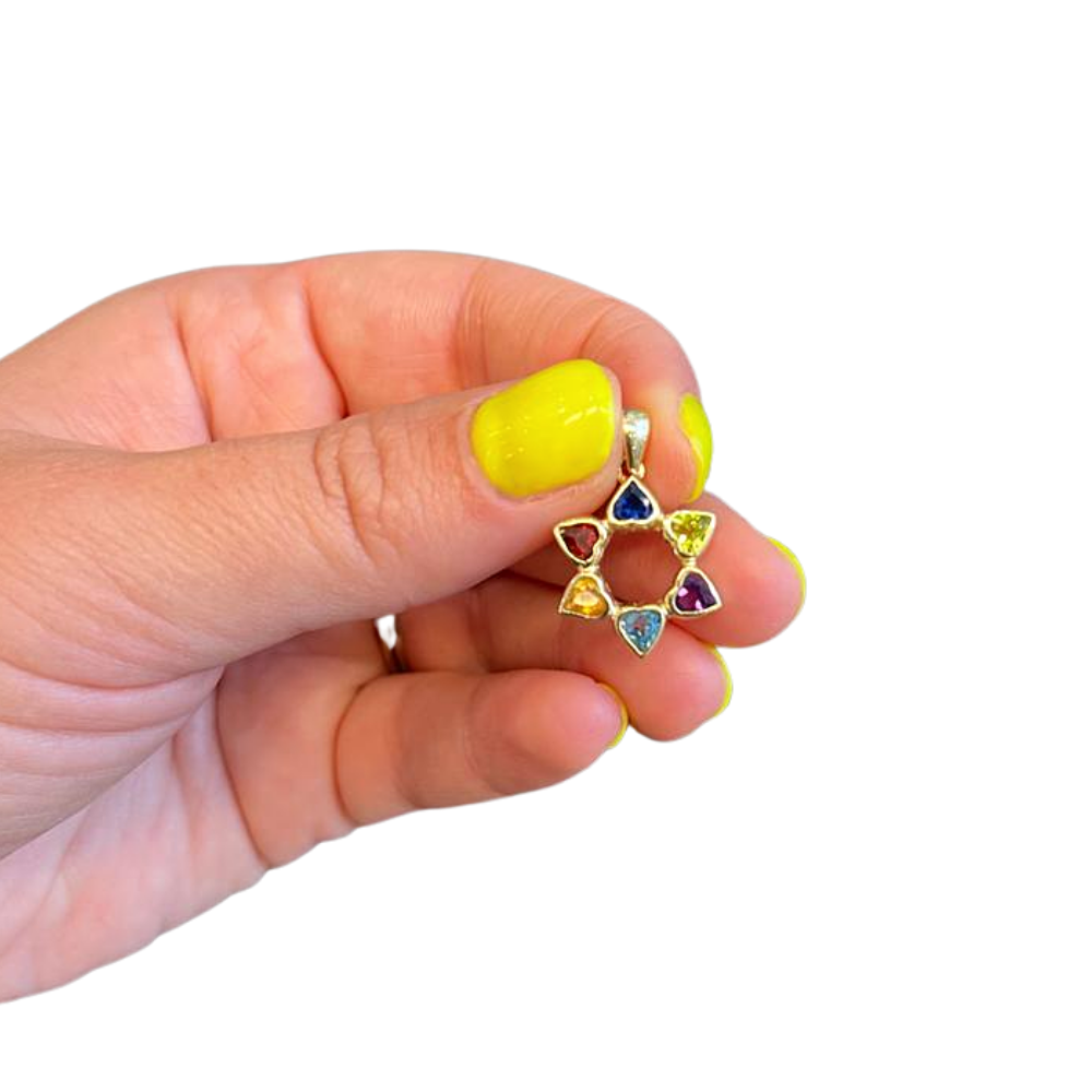 Heart Shaped Colorful Star of David Pendant 14k Gold
