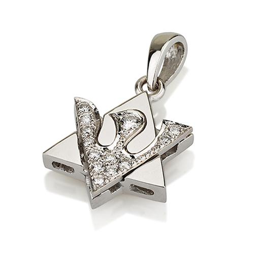 18k White Gold Shin Diamond Star of David Pendant