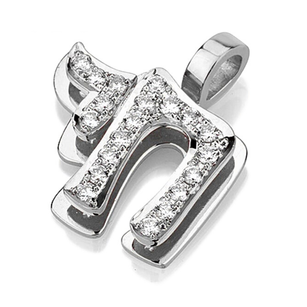 This dazzling 18k Gold Diamond Hai Pendant is a stunning piece of jewelry that will make a great gift for any occasion. The pendant is made of 18K gold forming the Hebrew word "chai", meaning life. The pendant is dual layered, the bottom layer acting as a mirror to enhance the upper layer's beauty. The upper layer is studded with diamonds, adding shimmer and value to this already amazing pendant.