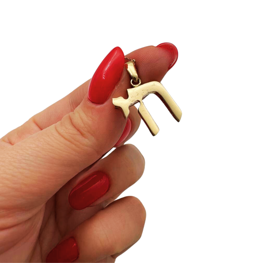 This classic and beautiful 14k Gold Hai Pendant is a wonderful piece of jewelry that will make a great gift for all ages. The pendant is made of solid, polished yellow gold, forming a large Hebrew word "chai", meaning life, in block letters. Its classic beauty makes it a wonderful addition to our Chai Pendants selection.
