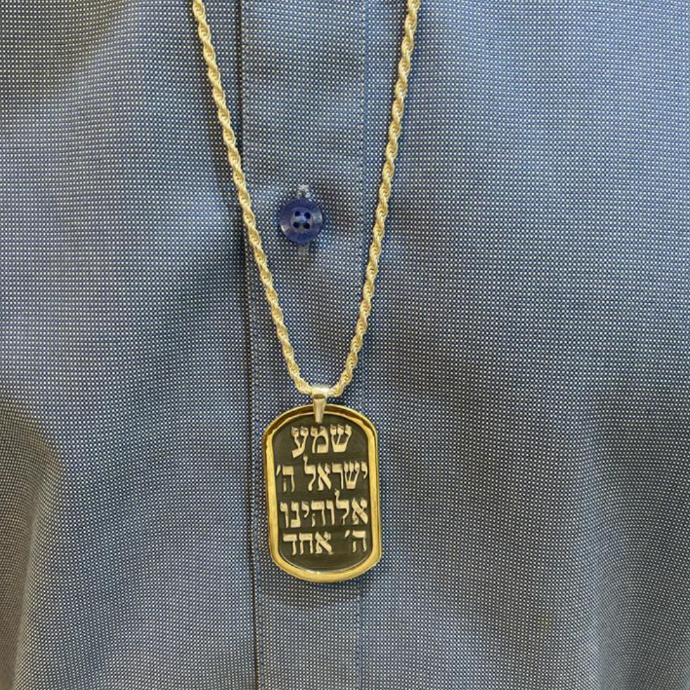 Shema Israel Large Tag Necklace for Men - Silver and Gold