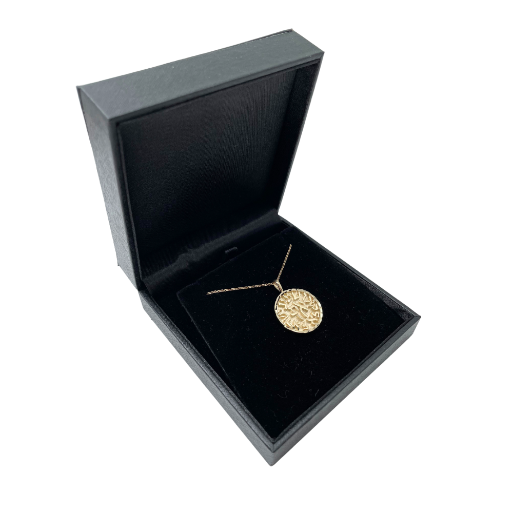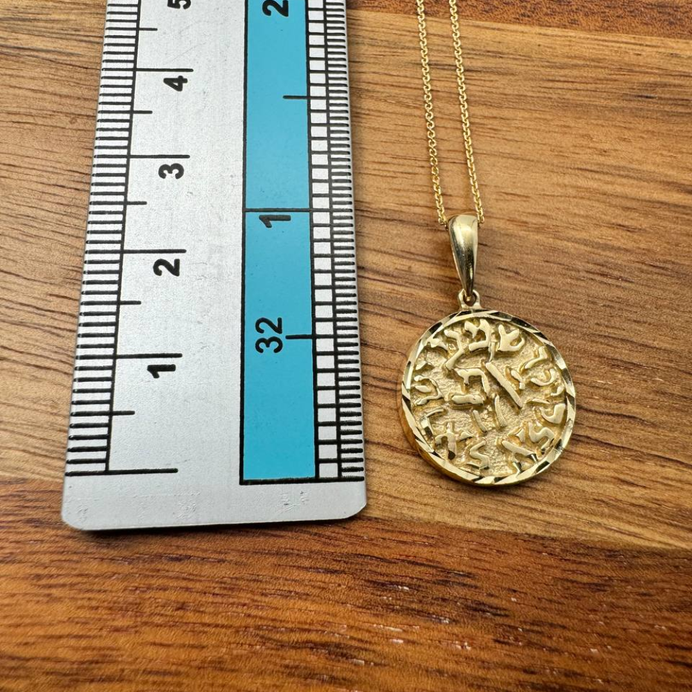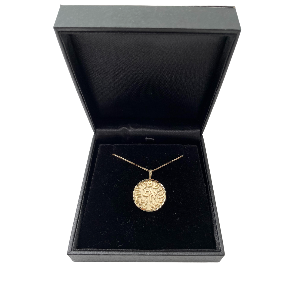 Shema Israel Pendant - 14K Gold Round Pendant with Diamond Cut Border
