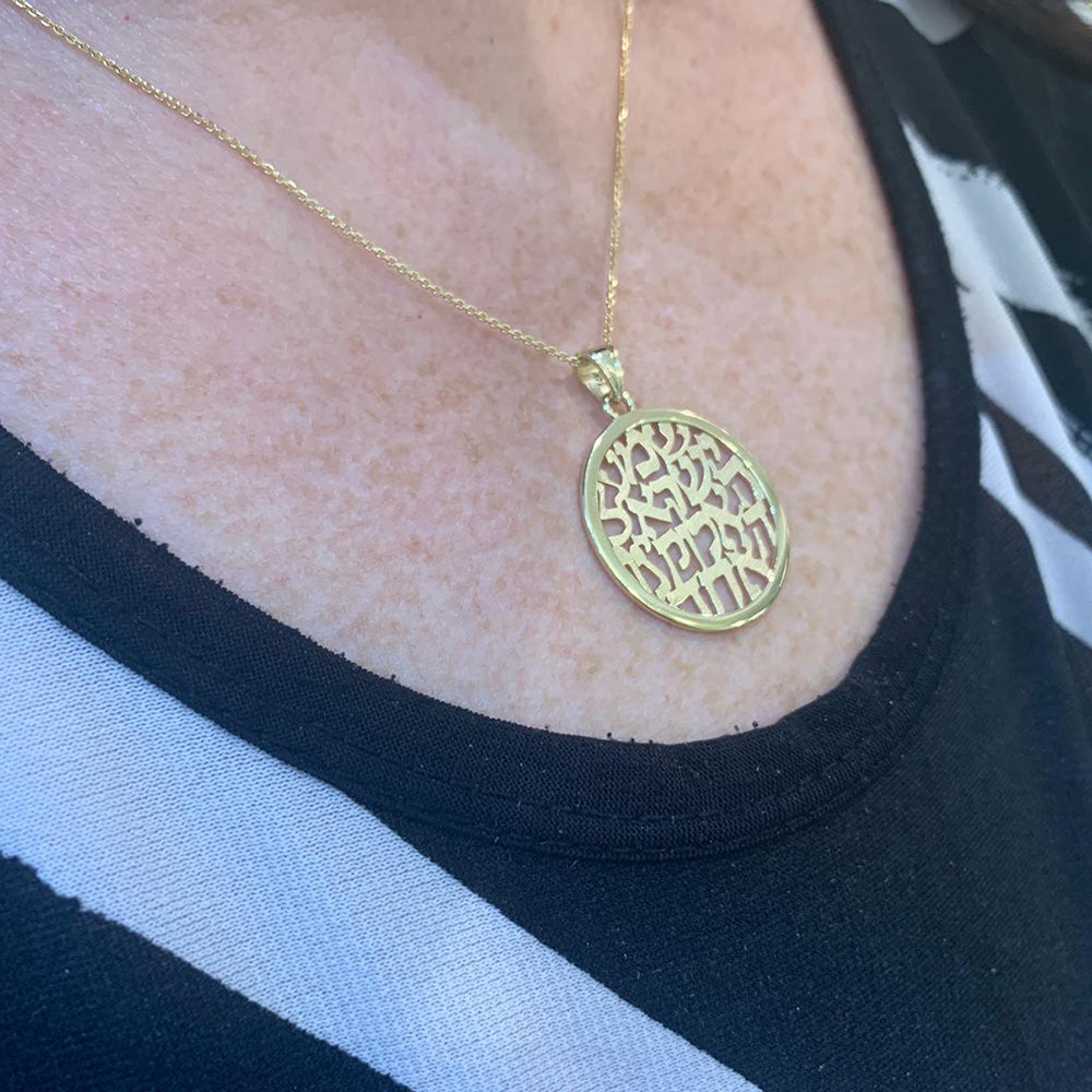 Shema Israel Pendant - 14k Gold Large Round