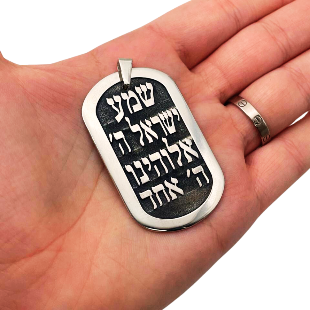Shema Israel Large Tag Pendant for Men in Silver