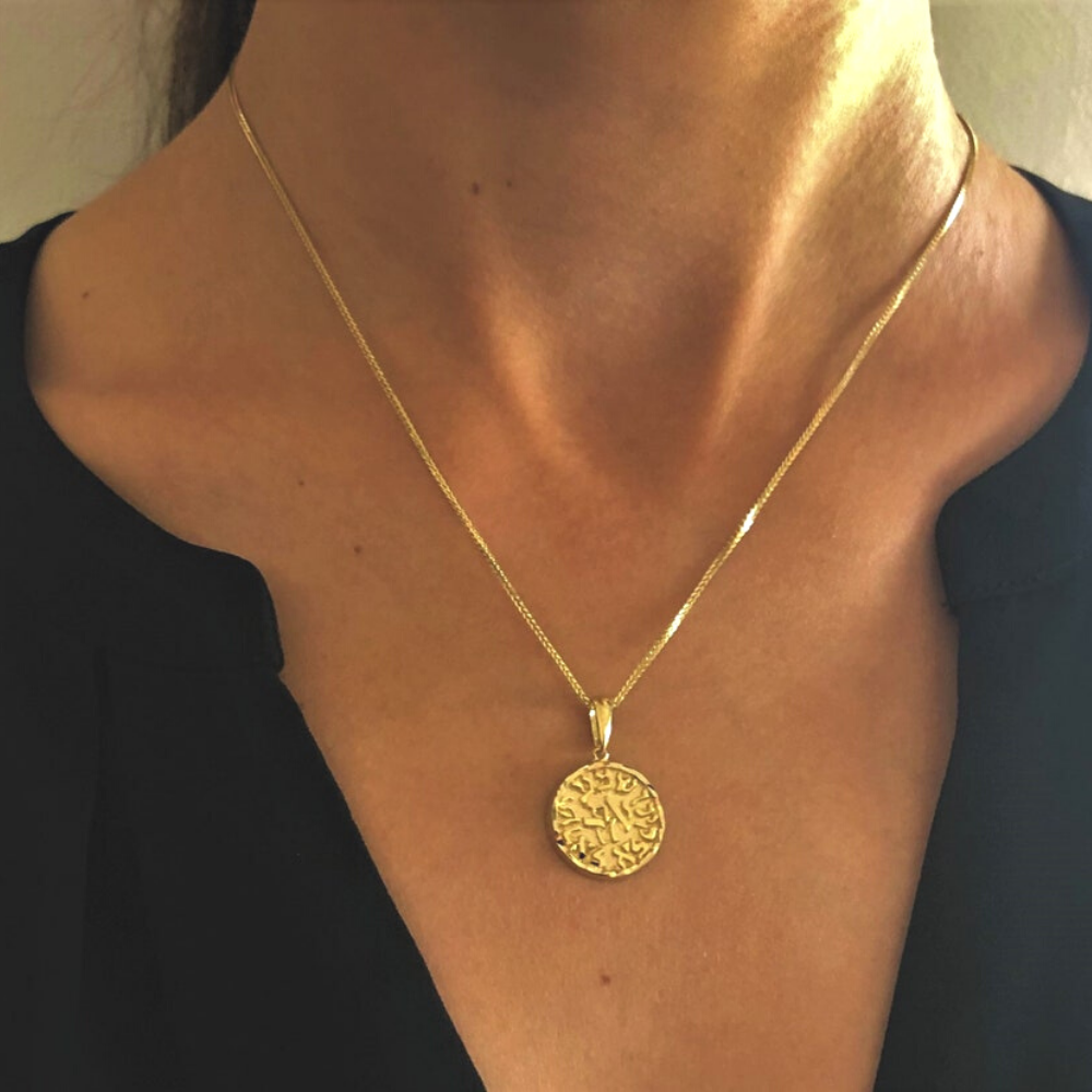Shema Yisrael necklace - 14K Gold Round Pendant with Diamond Cut Border