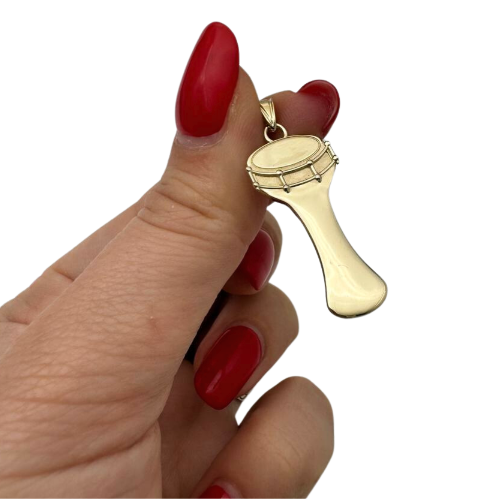 Elevate your style with our stunning Darbuka Pendant, meticulously crafted in luxurious 14K gold. Inspired by the rhythmic beats of the darbuka, also known as the goblet drum, this pendant is a true masterpiece of Israeli craftsmanship. Whether you're a musician or simply appreciate the beauty of music, this pendant is a must-have accessory. Handcrafted in Israel, each piece is intricately detailed to capture the essence of this beloved instrument. Perfect as a gift for a music lover or as a treat for yourself, this Darbuka Pendant is sure to make a statement wherever you go. Celebrate your passion for music with this exquisite piece of jewelry from Israel.