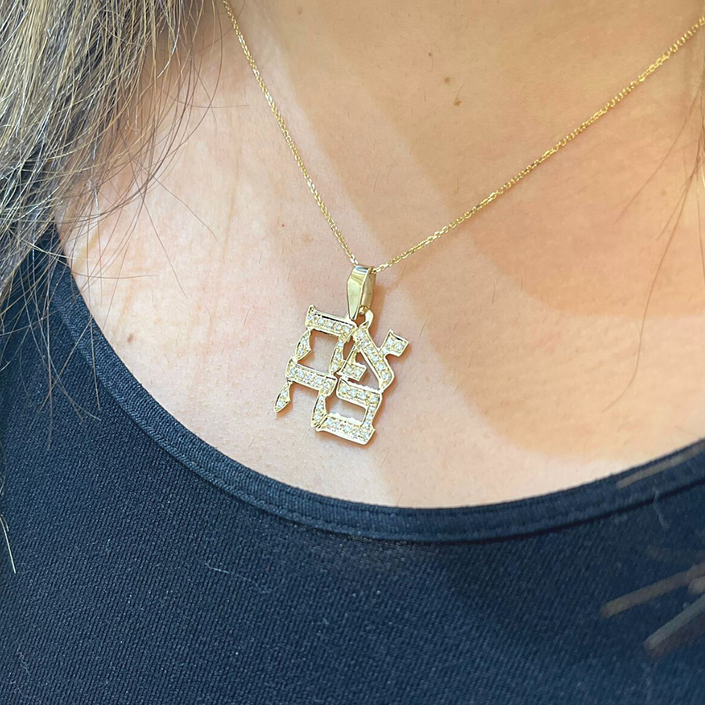 Sparkling diamonds adorn this stylish Ahava love pendant in 14 karat gold.
