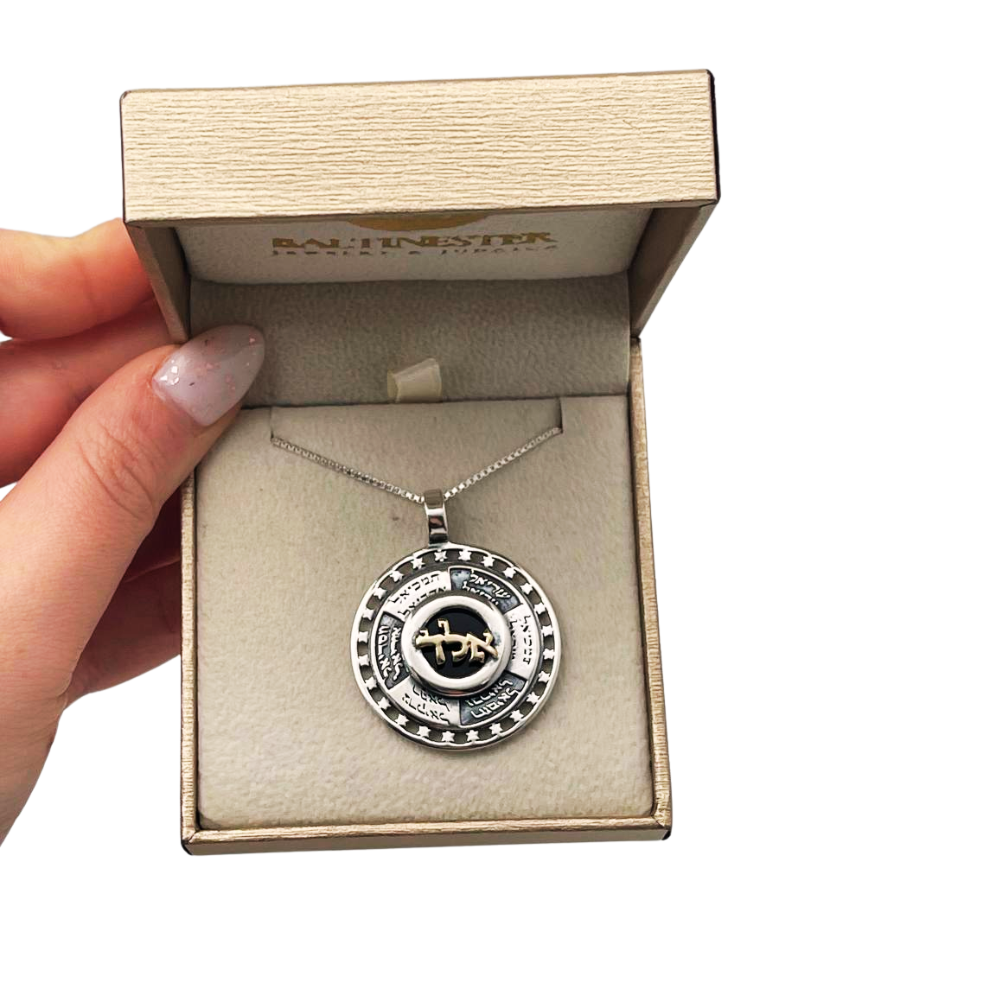 Seek divine guidance and protection with this exquisite Kabbalah Jewish Kabbalah Angel Names Medallion Necklace. Expertly crafted in sterling silver, the pendant features the powerful Hebrew letters Aleph-Lamed-Dalet (אלד) prominently displayed in luxurious 14K gold at its core. This sacred combination is revered in Kabbalah for its ability to attract positive energy and ward off negativity.
