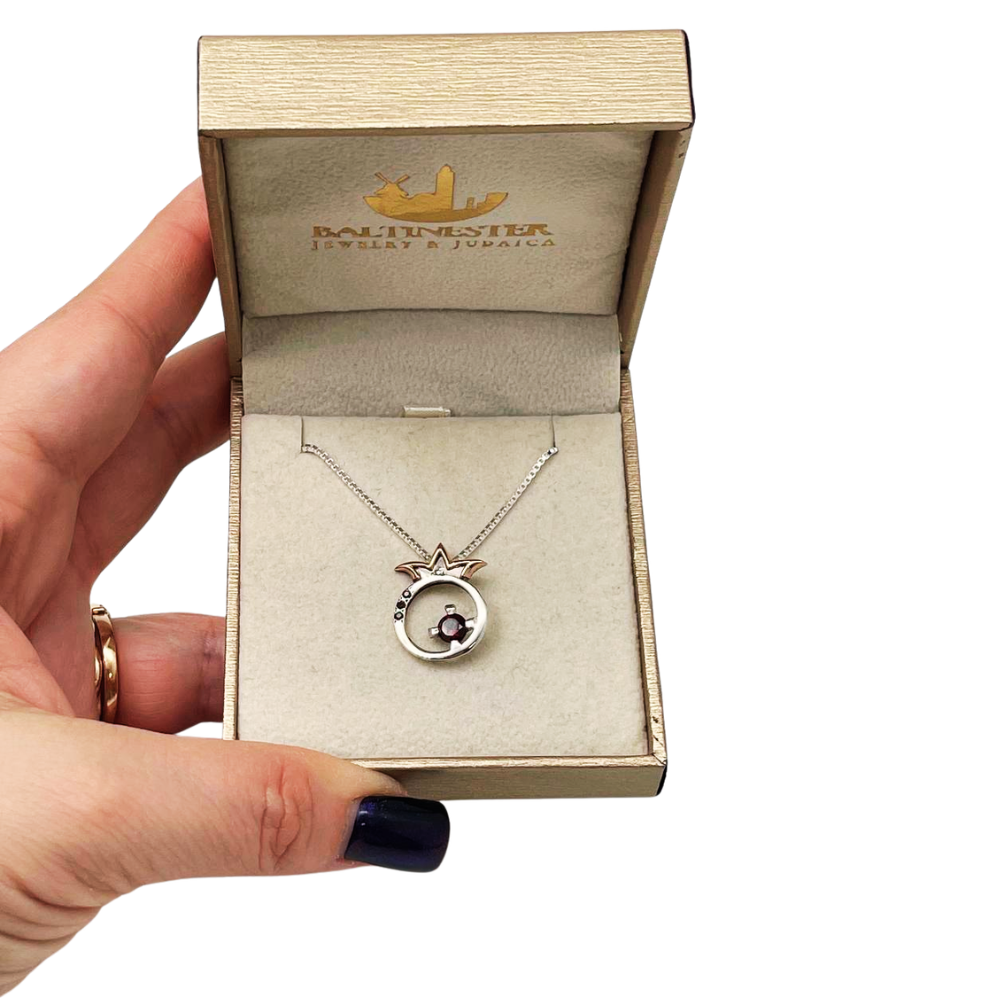 14K Gold and Silver Pomegranate with Garnet Kabbalah Pendant Set