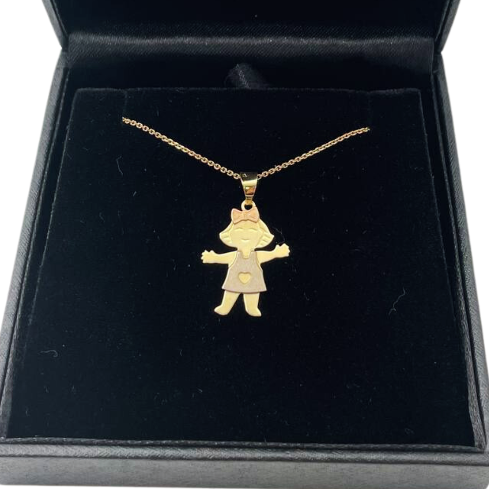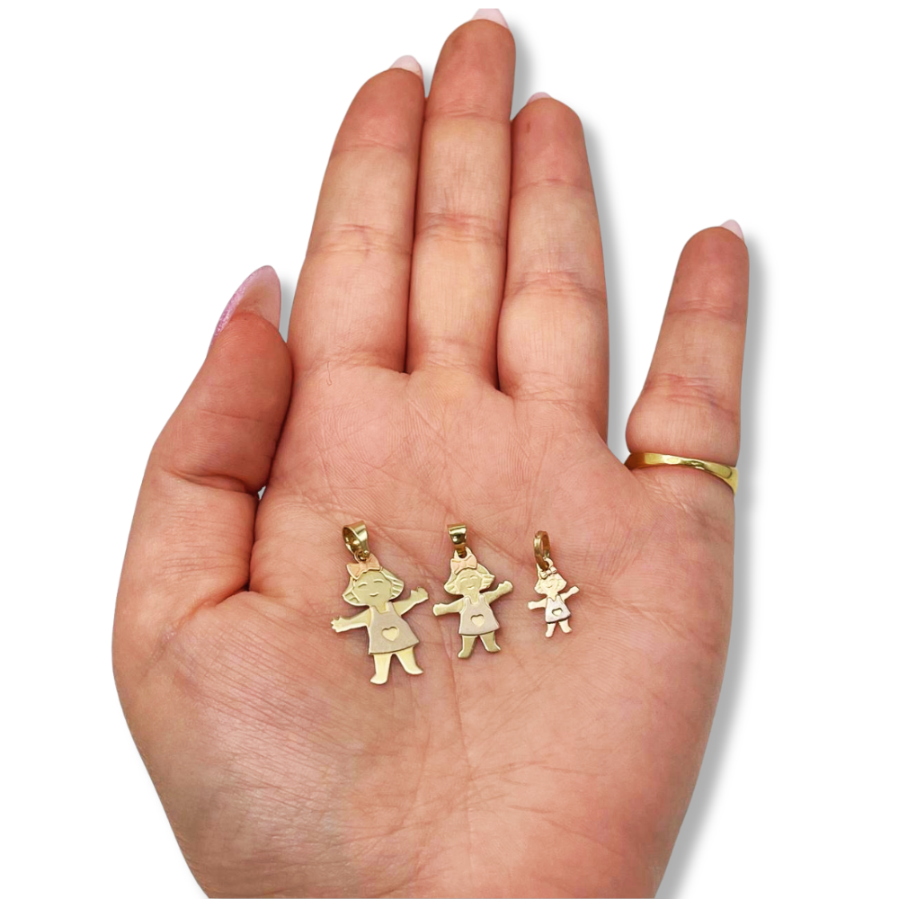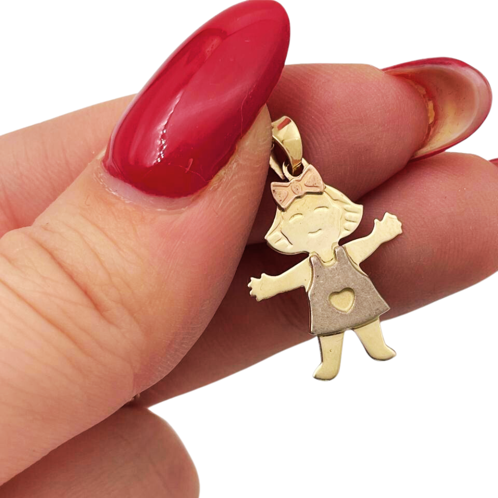 Little Girl Charm Pendant in 14K Tri-color Gold