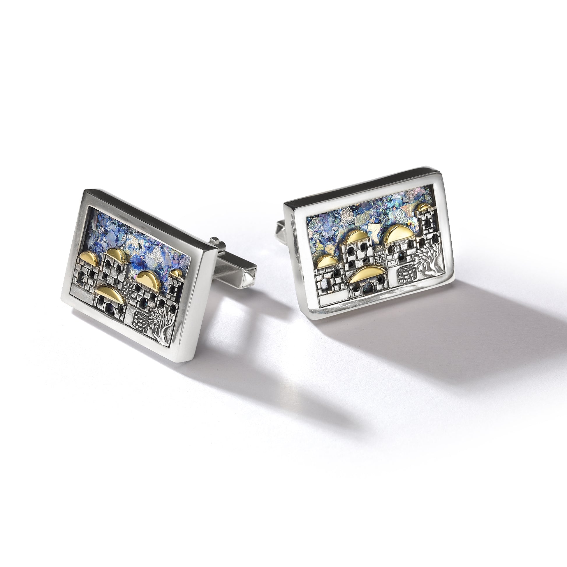 Roman Glass Jerusalem Skyline Cufflinks in Silver and Gold