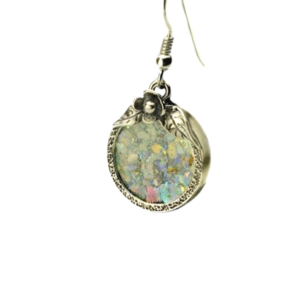 Silver Rose Roman Glass Earrings