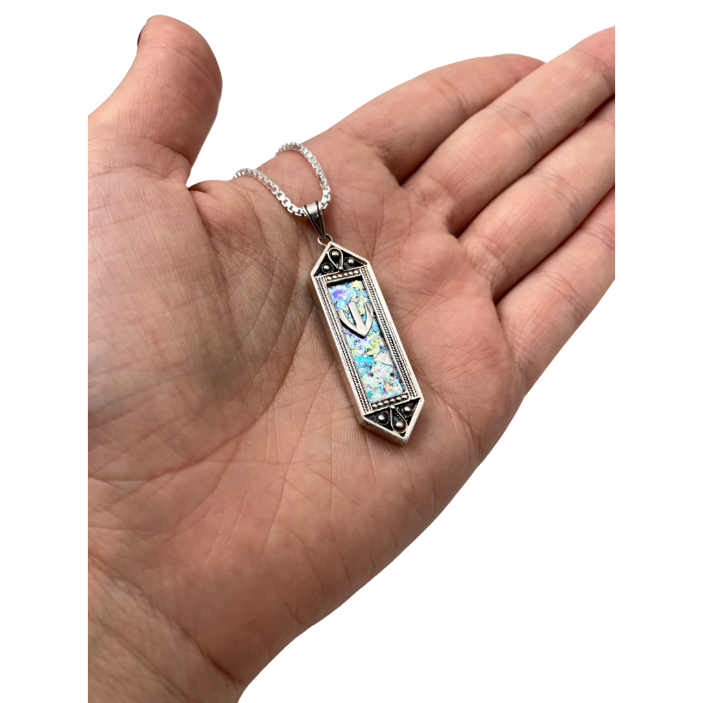 Sterling Silver Filigree Roman Glass Mezuza Pendant with Chain