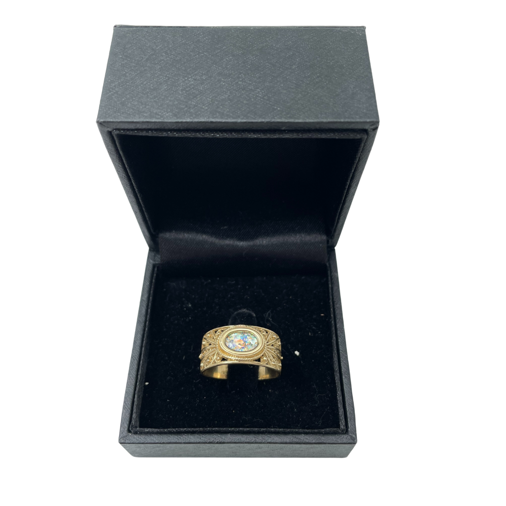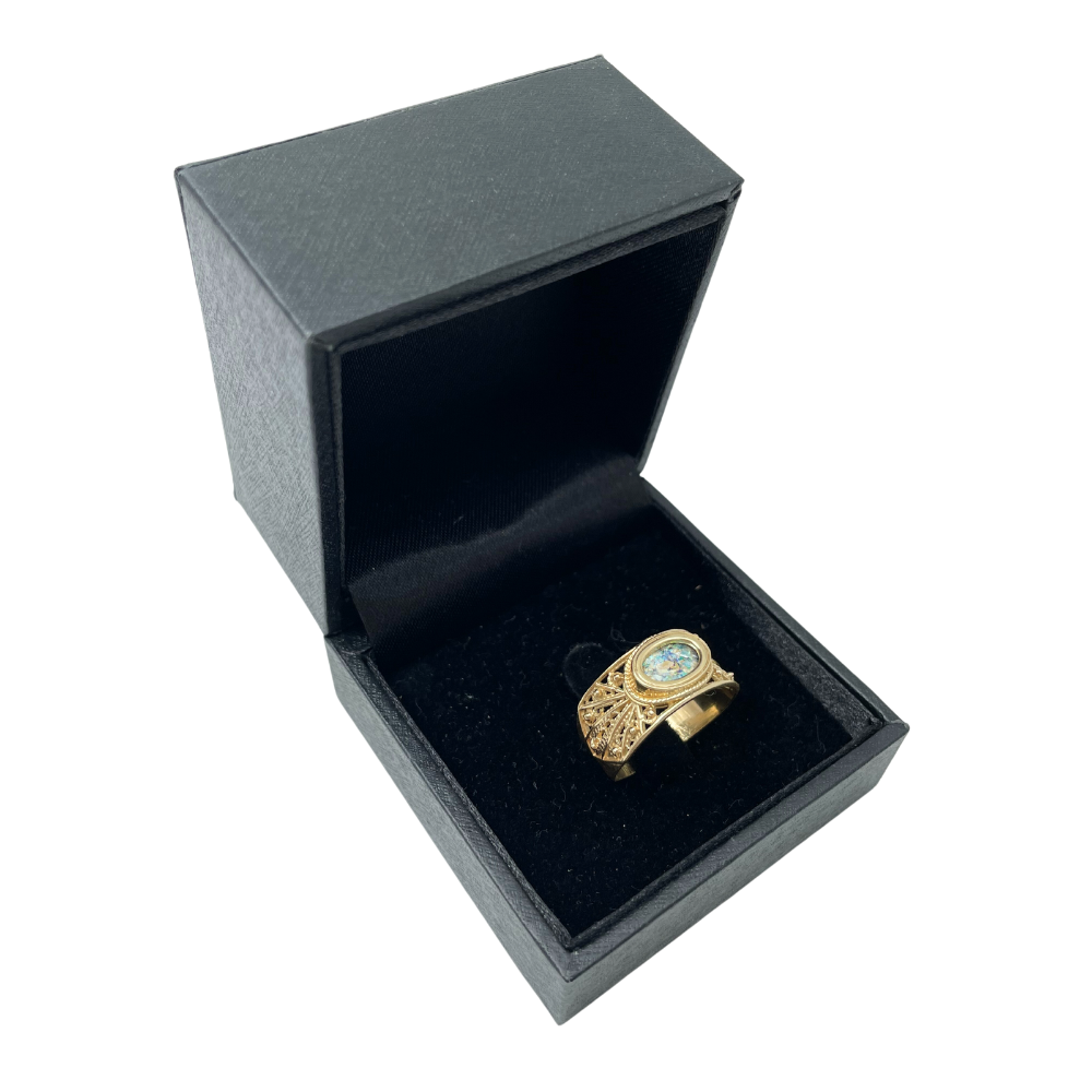 Roman Glass Ring - Filigree - 14k Gold