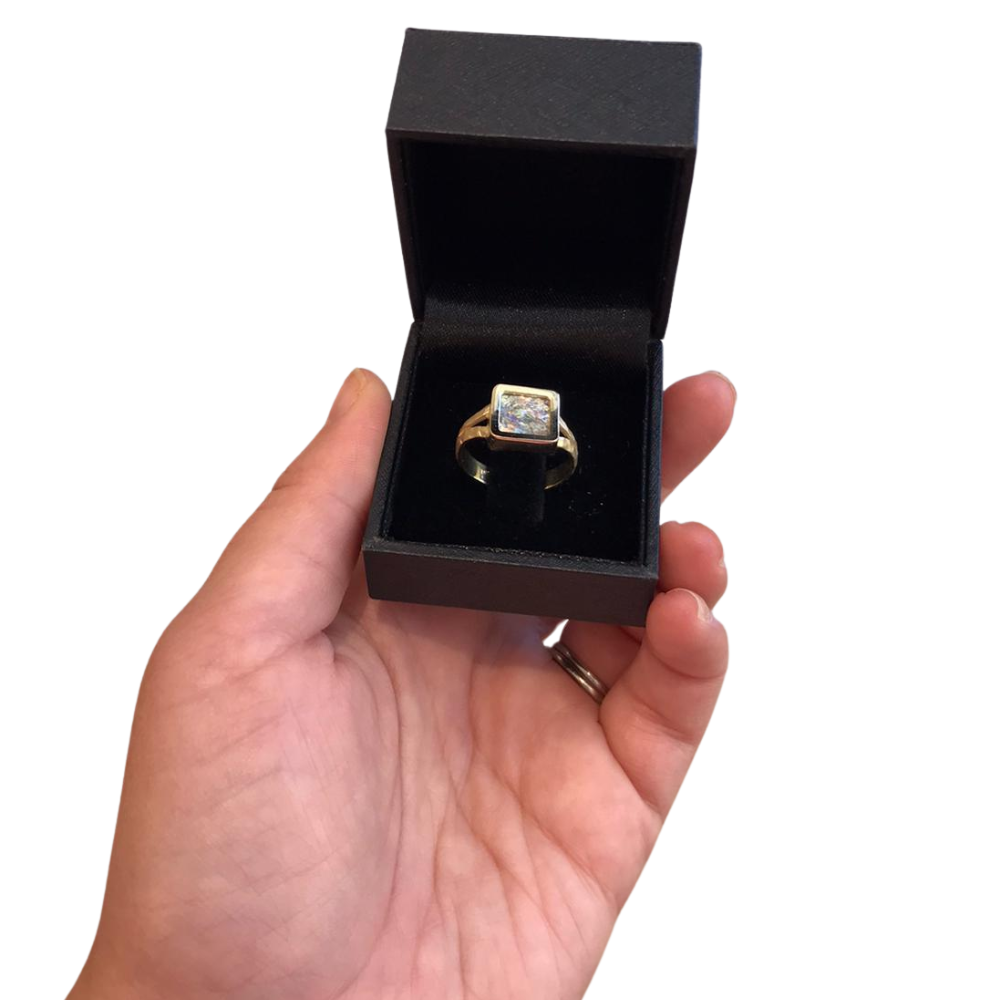 14k Yellow Gold Roman Glass Square Ring
