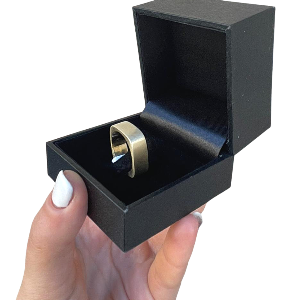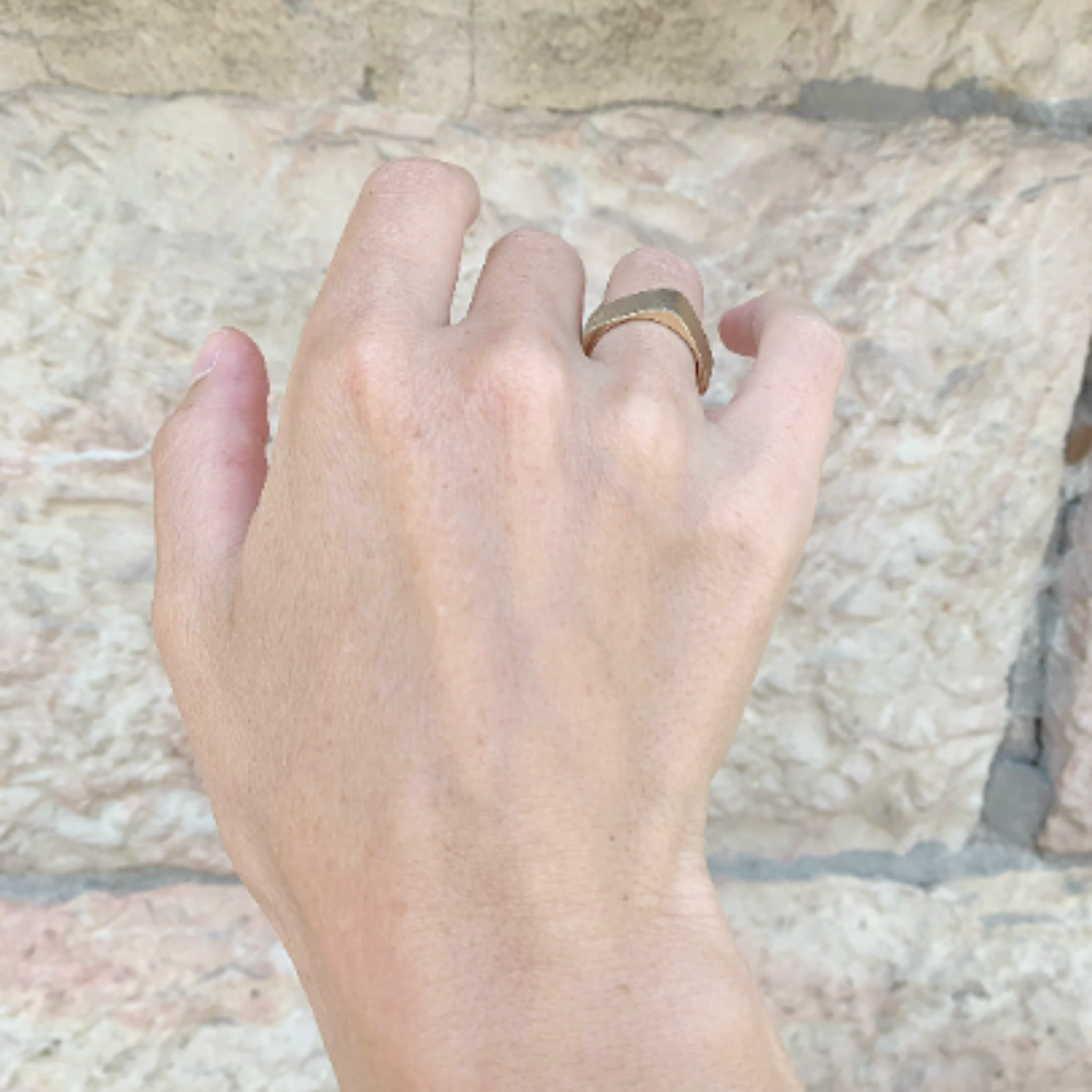 What makes this ring stand out from other gold wedding rings is the Kabbalistic design, being round on the inside and square on the outside. This design is believed to bring harmony and peace between a husband and a wife. While the square represents home and warmth, the circle symbolizes the infinity of the marriage.