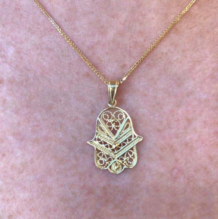The Hamsa, or hand of Miriam, is known to have special protective powers, specifically against the evil eye. It is believed that one who wears a hamsa or hangs one in his home will merit this special protection. By purchasing this 14k gold Hamsa filigree pendant, you don’t only receive an amazing jewel, you also get a protective amulet, making this an excellent choice.
