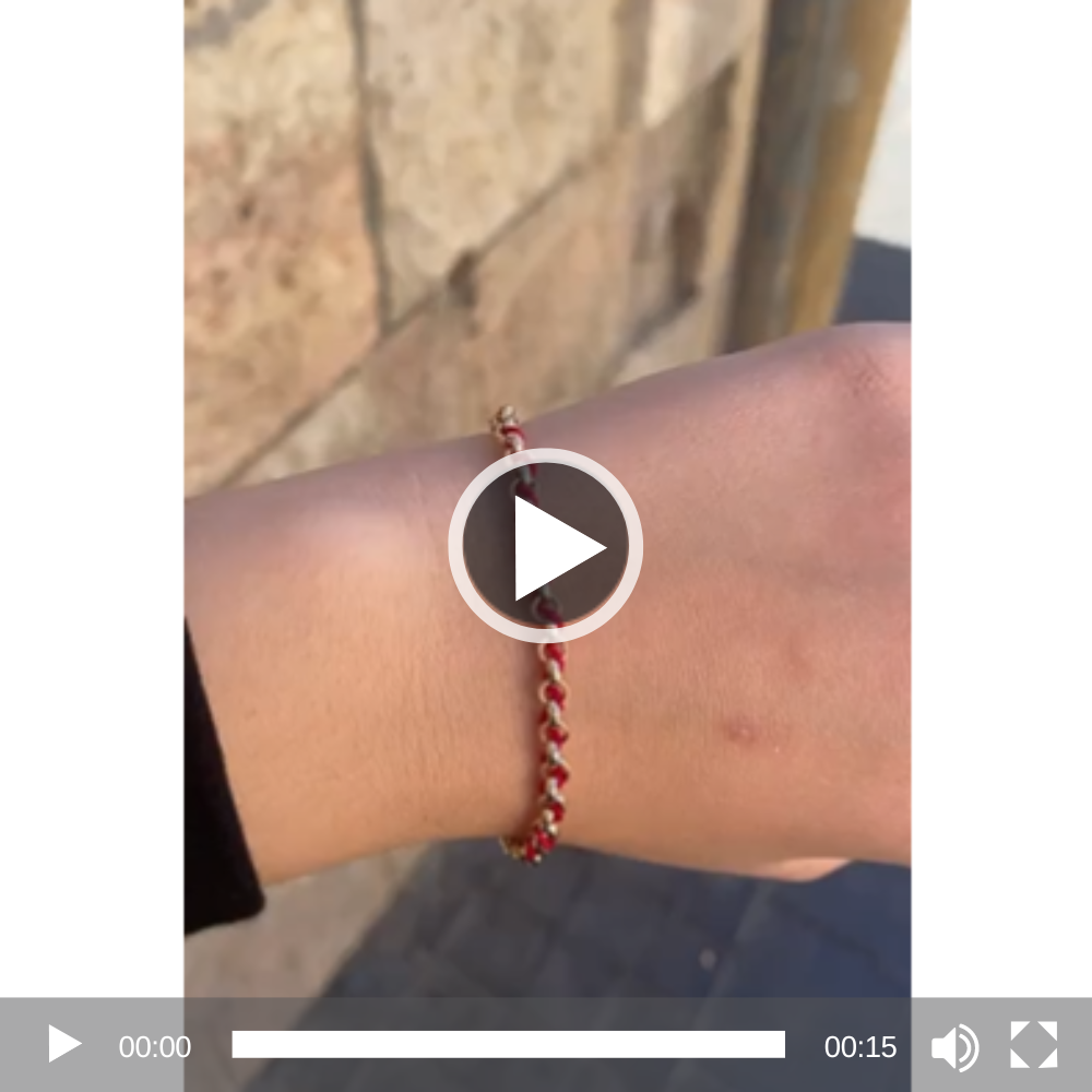 The bracelet is a 14k gold round link chain, with a scarlet thread woven through its links. The red thread is Kabbalisticly known for its protective powers against the Evil Eye. This gold and red bracelet invites good luck for the wearer while also being an alluring piece of jewelry.