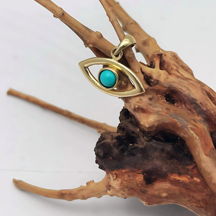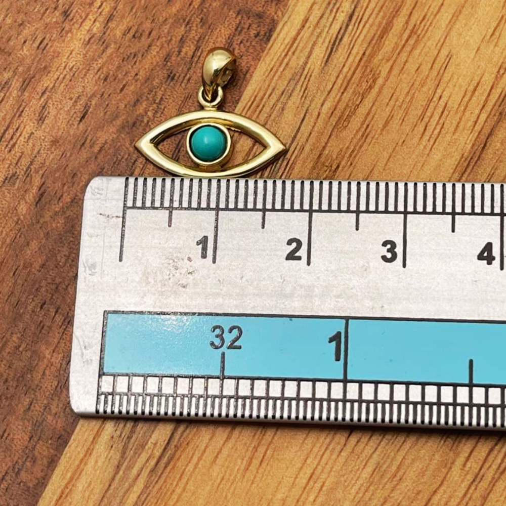 Protect yourself from harm with this elegant Evil Eye charm pendant set with an opaque turquoise.