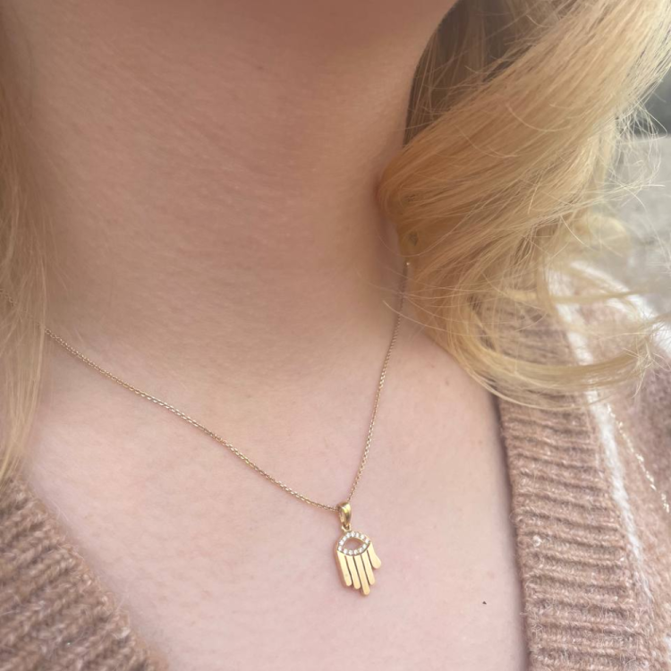- Cutout Evil Eye in the palm coated in dazzling white diamonds