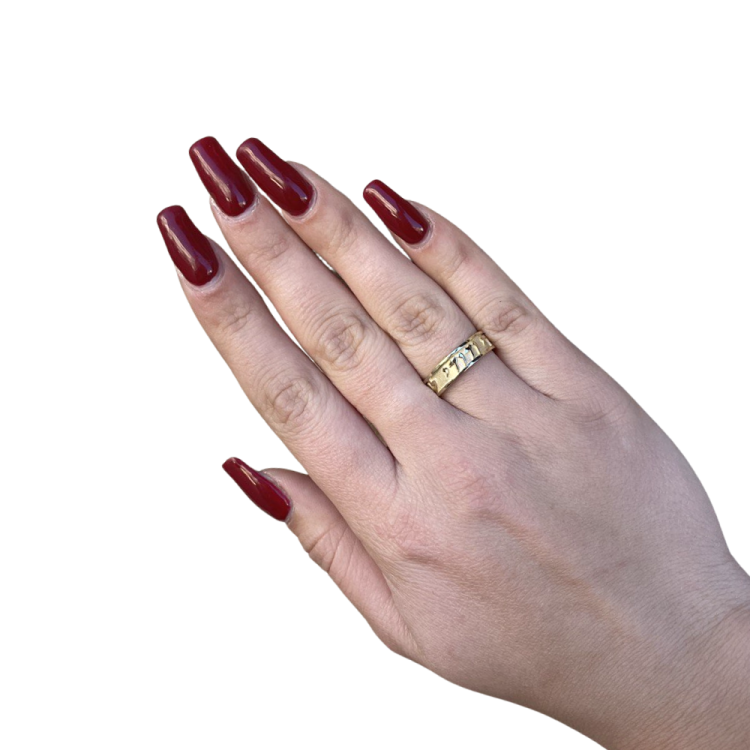 This Ani Ledodi Love ring is made of 14k yellow gold with a brushed gold base and shiny bold gold letters which spell the famous Ani Ledodi romantic verse. The ring also enjoys shiny gold rims which give the ring the perfect second to none look. The romantic verse “Ani Ledodi Vedodi li”, meaning ‘I am to my beloved and my beloved is to me’ is featured on many Hebrew rings. It is taken from the Song of Songs, written by the great King Solomon. The verse depicts the love and yearning between a man and a woman, and on a deeper level between G-d and the Jewish people. This wonderfully designed and handcrafted ring can be a great wedding ring as well as an exceptional anniversary gift, a marvelous way of showing your spouse how much they mean to you.
