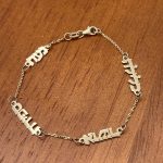 Custom Order – 8″ Hebrew Name Bracelet 14k Gold – 4 mm high letters, Anchor chain – Rachel, Yonah, Yoel