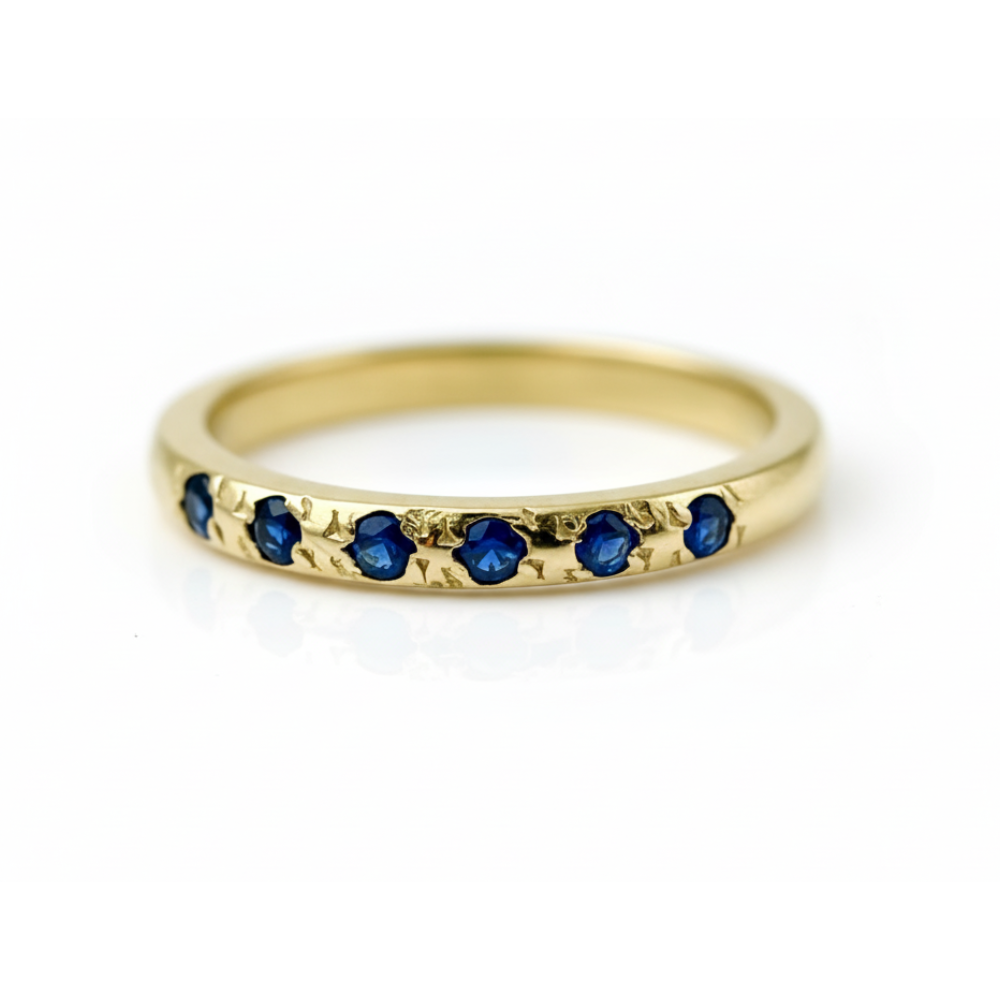 Custom Order – Blue Sapphires Slim Elegant Ring in 14K Hammered Gold – Size 6.75