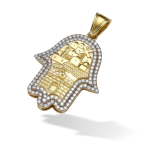 Crafted to make a bold and meaningful statement, this large 35mm Hamsa pendant in solid 14K gold beautifully blends ancient symbolism with modern luxury. At its heart lies a finely cut Jerusalem skyline, a tribute to the spiritual center of the Jewish people. Surrounding it, two elegant rows of well-cut diamonds—totaling 1.22 carats—add a radiant touch of sophistication and brilliance.